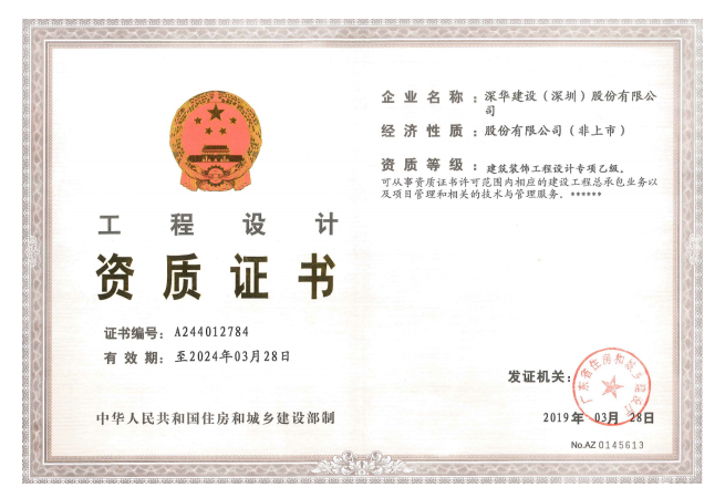 建筑装饰工程设计专项乙级